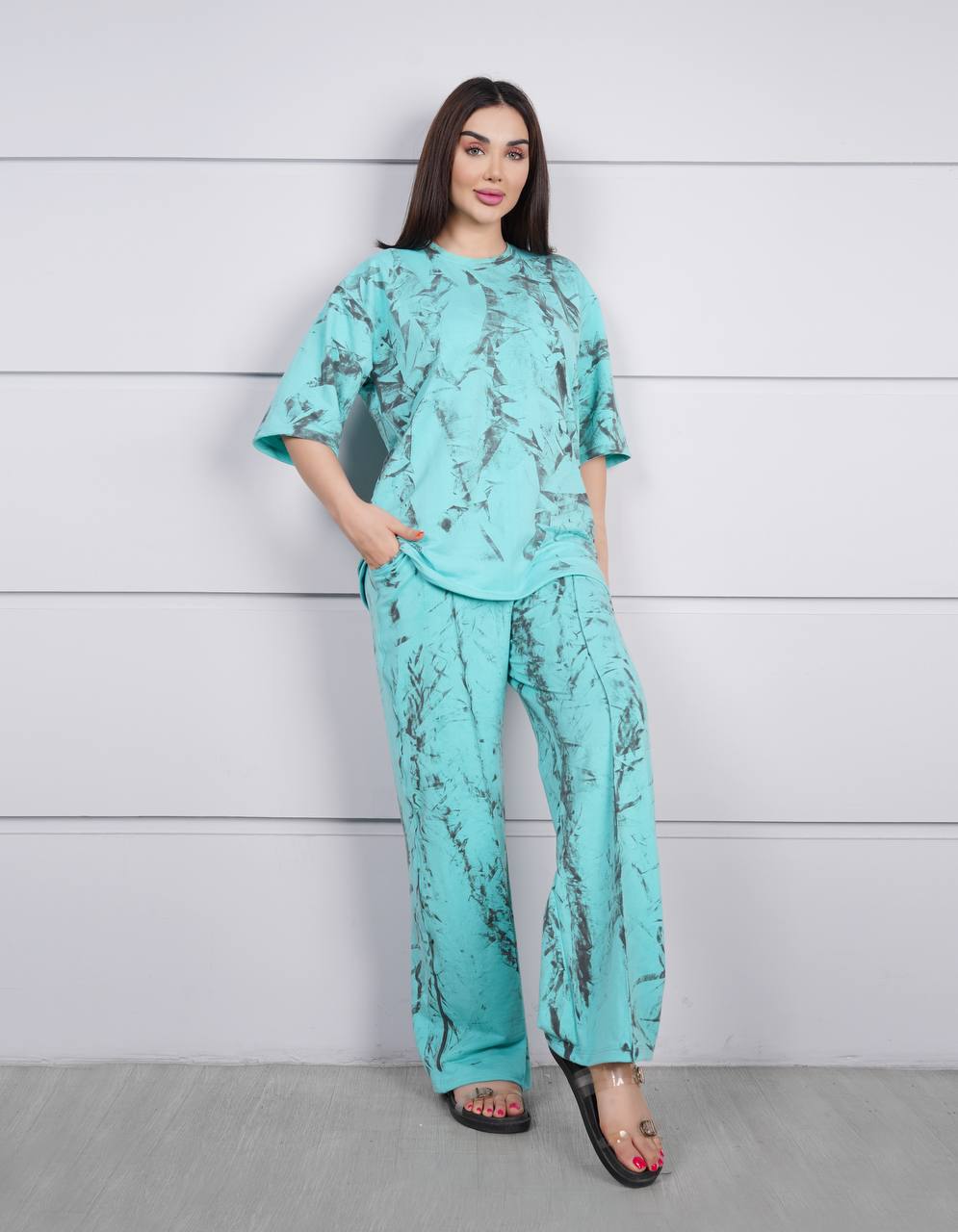ست زنانه تیشرت شلوار گلکسی مدل آبرنگی کد 8681