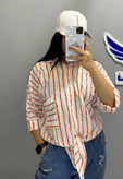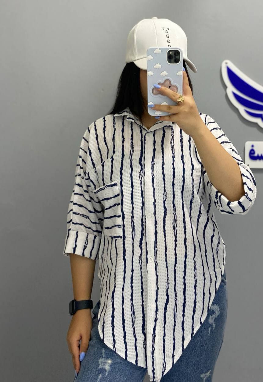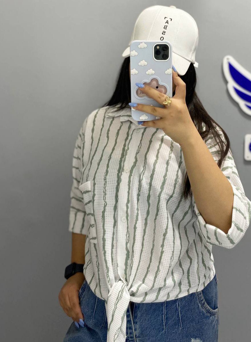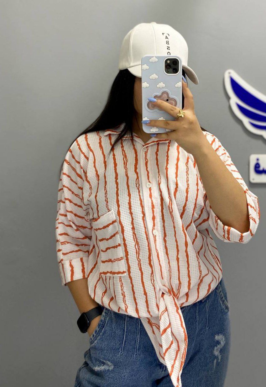 شومیز زنانه مدل راه راه جلو گره طرح پری کد 8685