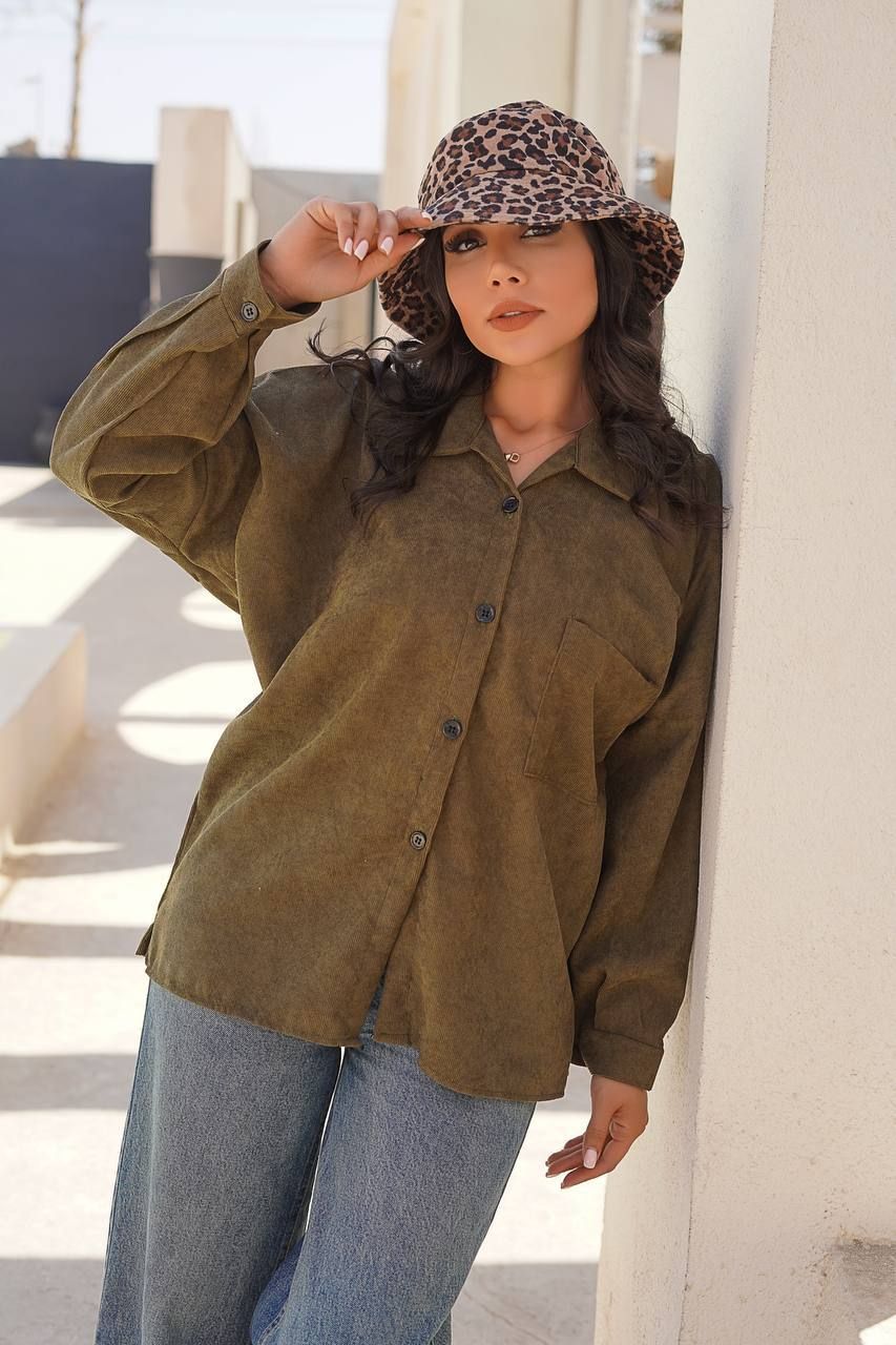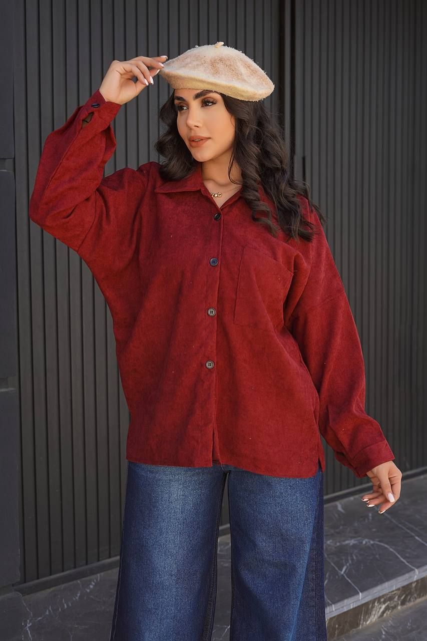 شومیز زنانه جنس مخمل کبریتی طرح تک جیب کد 8712