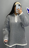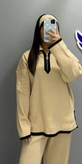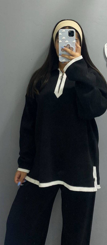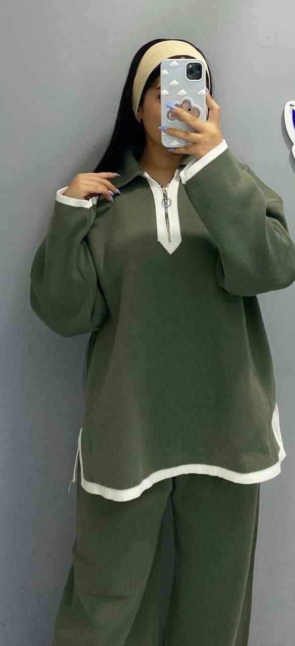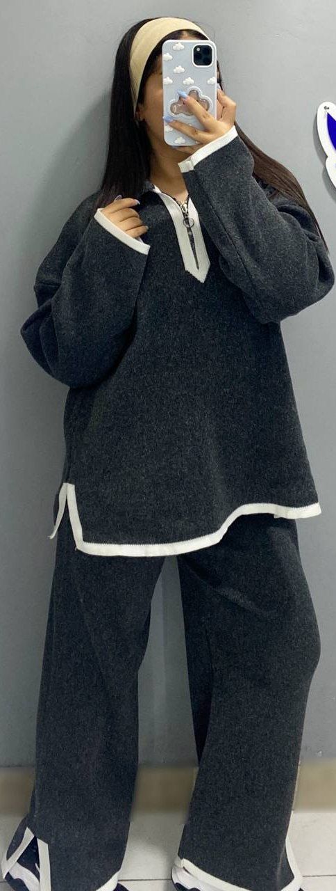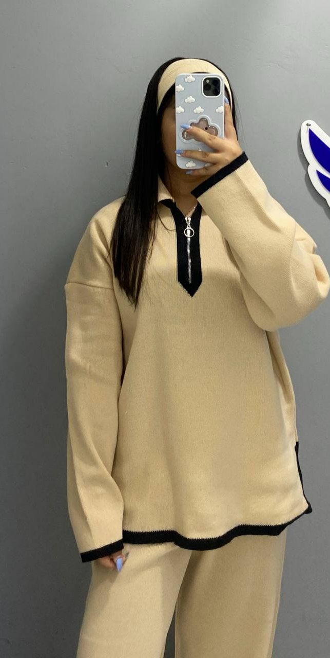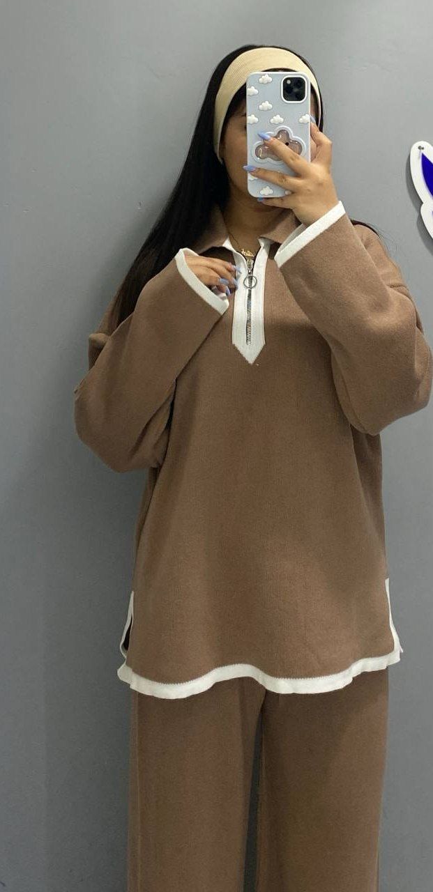 ست بلوز و شلوار زنانه جنس ریز بافت طرح یقه زیپ .شلوار دمپا چاکدار کد 8702